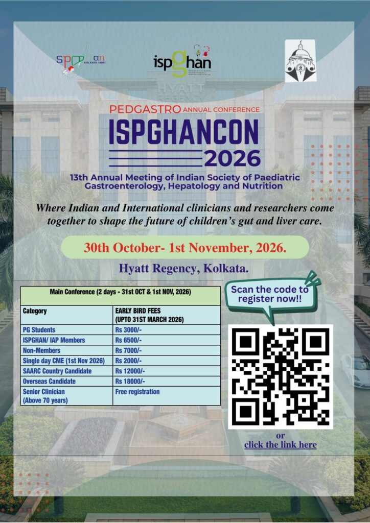 Joint 10th Annual meeting of Indian Society of Pediatric Gastroenterology, Hepatology and Nutrition – ISPGHANCON 2023, the 33rd National Conference of Gastroenterology chapter of IAP and 18th CAPGAN conference was hosted in the city of Hyderabad at Park Hyatt Hotel, Banjara Hills from 26 th – 29 th October 2023.